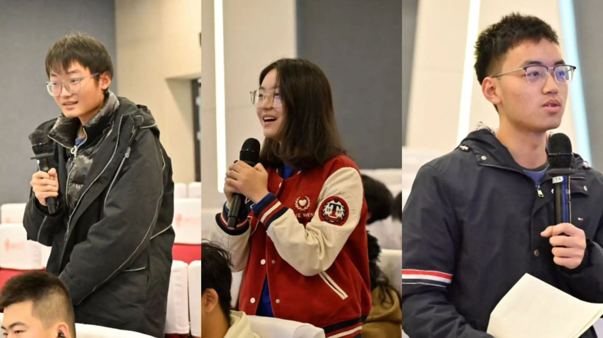 在互动环节中,同学们围绕学习动力、时间分配及学习方法等相关话题展开积极提问。三位分享嘉宾耐心解答,提供了诸多的实用建议和个人经验,干货满满,同学们受益匪浅。