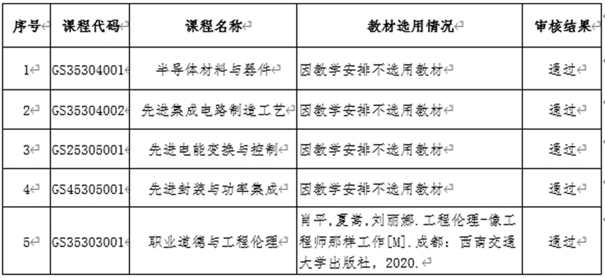依据《太阳成集团tyc7111cc教材管理实施细则》(西交党〔2024〕35号)相关教材选用规定,根据公司研究生院《关于开展2025-2026学年第一学期研究生教材选用及审核工作的通知》要求,公司教材建设工作组已完成公司2025-2026学年第一学期研究生开课课程的教材选用审核工作,现将审核结果公示如下: