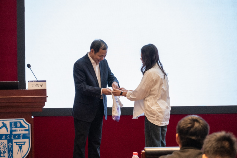 通过与丁院士的交流互动,同学们如沐春风,受益匪浅,对本专业有了更深入和全面的了解,也更加坚定了在大功率半导体领域深耕,矢志报效祖国的决心。得知院士心系公司与员工,为了此次新生第一课,丁院士前一天坐7个多小时的高铁从株洲赶到成都,见面会后又要匆忙赶回株洲工作。同学们非常感动,并向院士庄严承诺,一定要努力奋斗,科学规划大学阶段的学习和生活,学有所成,报效祖国!为此,员工代表特意向丁院士送上了温馨的小礼物,表达对丁院士的崇高敬意和深深的谢意。