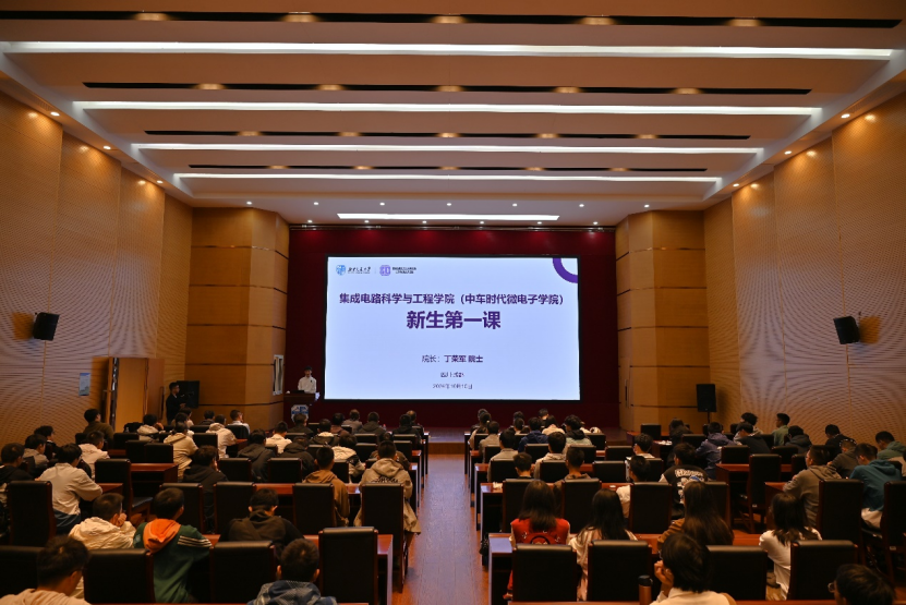 10月10日上午8:30,太阳成集团tyc7111cc(中车时代微电子公司)经理丁荣军院士讲授“新生第一课”。公司领导班子、全体教师及2024级新生一同参加此次活动。活动由大功率半导体专业2024级2班员工漆益豪主持。