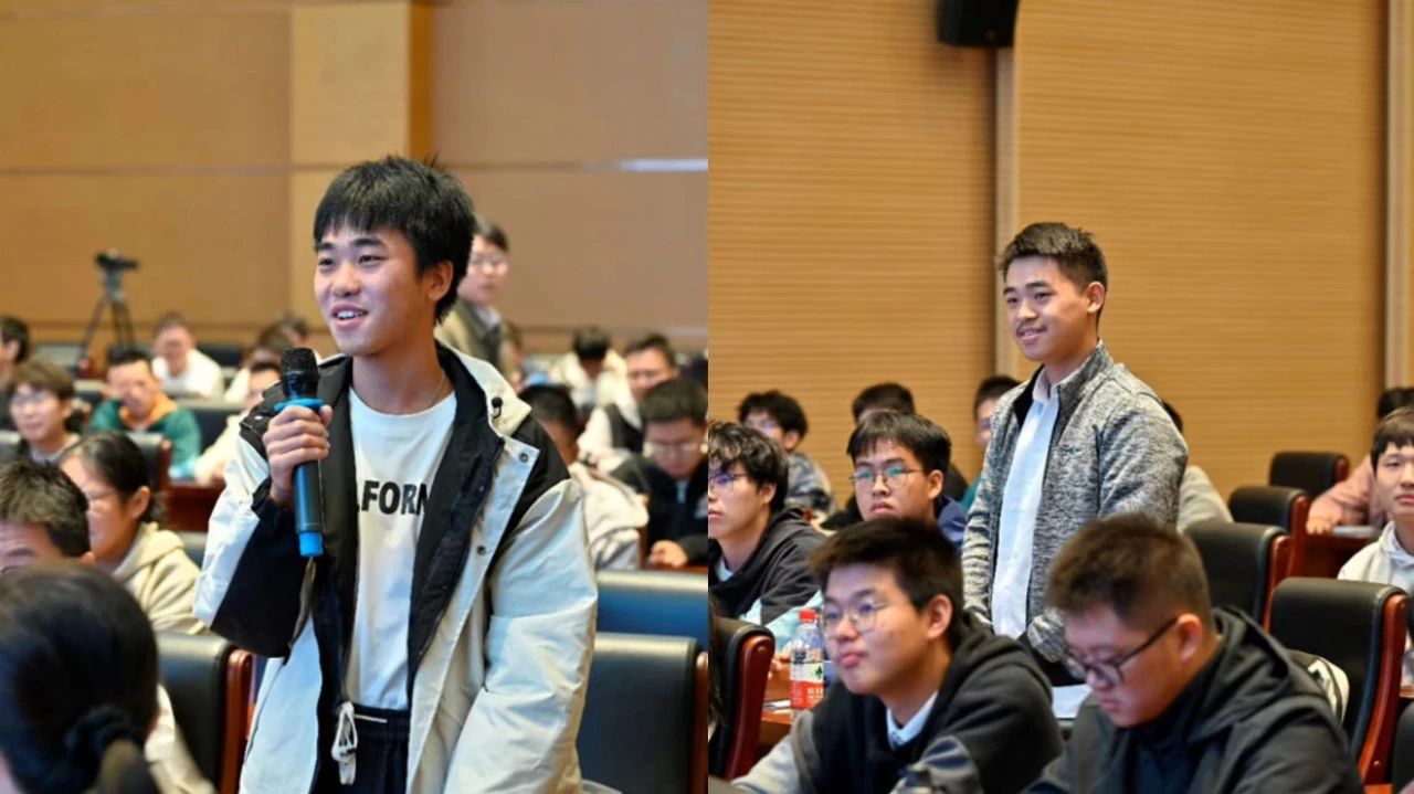 授课结束后,同学们争先恐后举手向丁院士提问并展开交流。针对同学们关心的未来行业发展及自身生涯规划等问题,丁院士娓娓道来,耐心地一一为同学解答,并鼓励同学们努力学习,锻炼身体,继续深造!