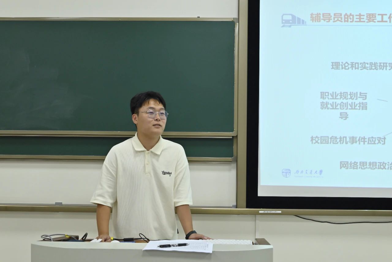 接下来,2024级本科生辅导员张文就同学们关心关注的具体问题进行了详细介绍。他谈到,思想政治辅导员工作涵盖员工的思想、学习、心理、就业等方方面面,同学们遇到相关问题,可以第一时间联系辅导员寻求帮助。他带领同学们逐一学习了本科生学籍、教学学分、员工纪律处分、离校请销假、员工公寓等相关管理条例。张老师还为同学们详细解读了公司的奖勤助贷体系,他提醒同学们在日常的学习工作生活中做好个人生命和财产安全保护。