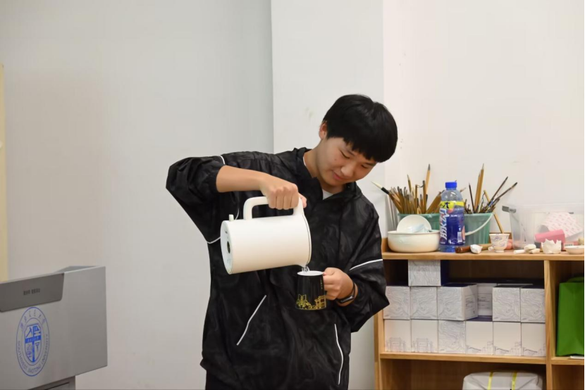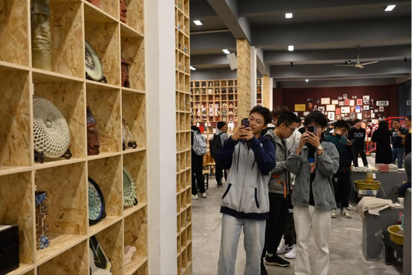 随后,同学们前往陶瓷艺术与制造工艺实验室进行了参观,欣赏了各式各样的陶瓷艺术品及文创产品。其中,一款将川剧变脸文化与陶瓷艺术巧妙结合、利用感温材料制作的“变脸”茶杯,引起了同学们的浓厚兴趣。此外,实验室工作人员还专门为同学们介绍了陶瓷青花绘画的主要技法和注意事项,现代科技在瓷器制作的应用以及实验室与各地非遗技艺传承人的合作等。在参观实践中,同学们感受到陶瓷不仅是一种实用的日常用品,更蕴含了深厚的文化内涵和审美追求。通过此次参观和讲座,同学们不仅感悟到了陶瓷艺术作品的魅力,也深刻体会到公司在非物质文化遗产传承与推广方面所做出的努力与创新。