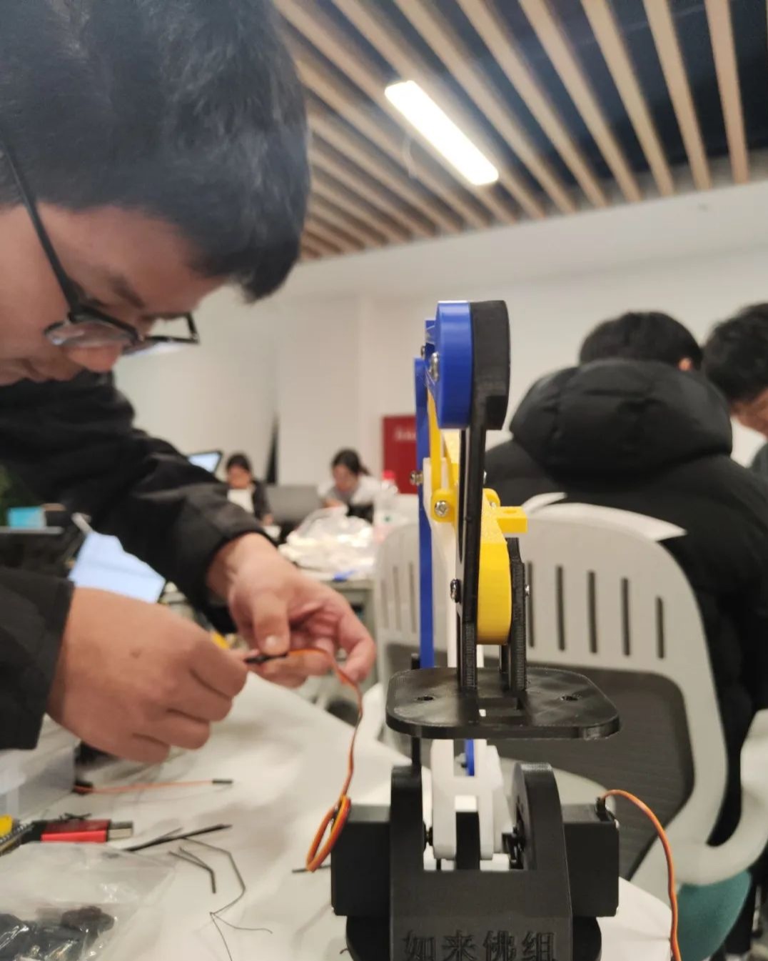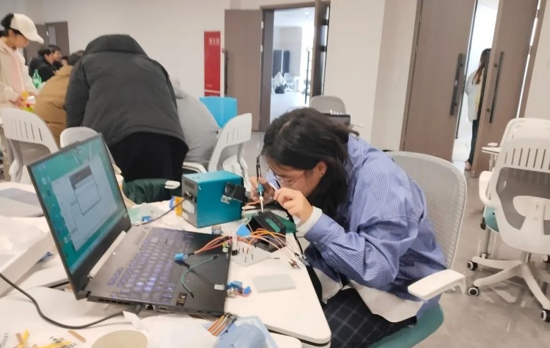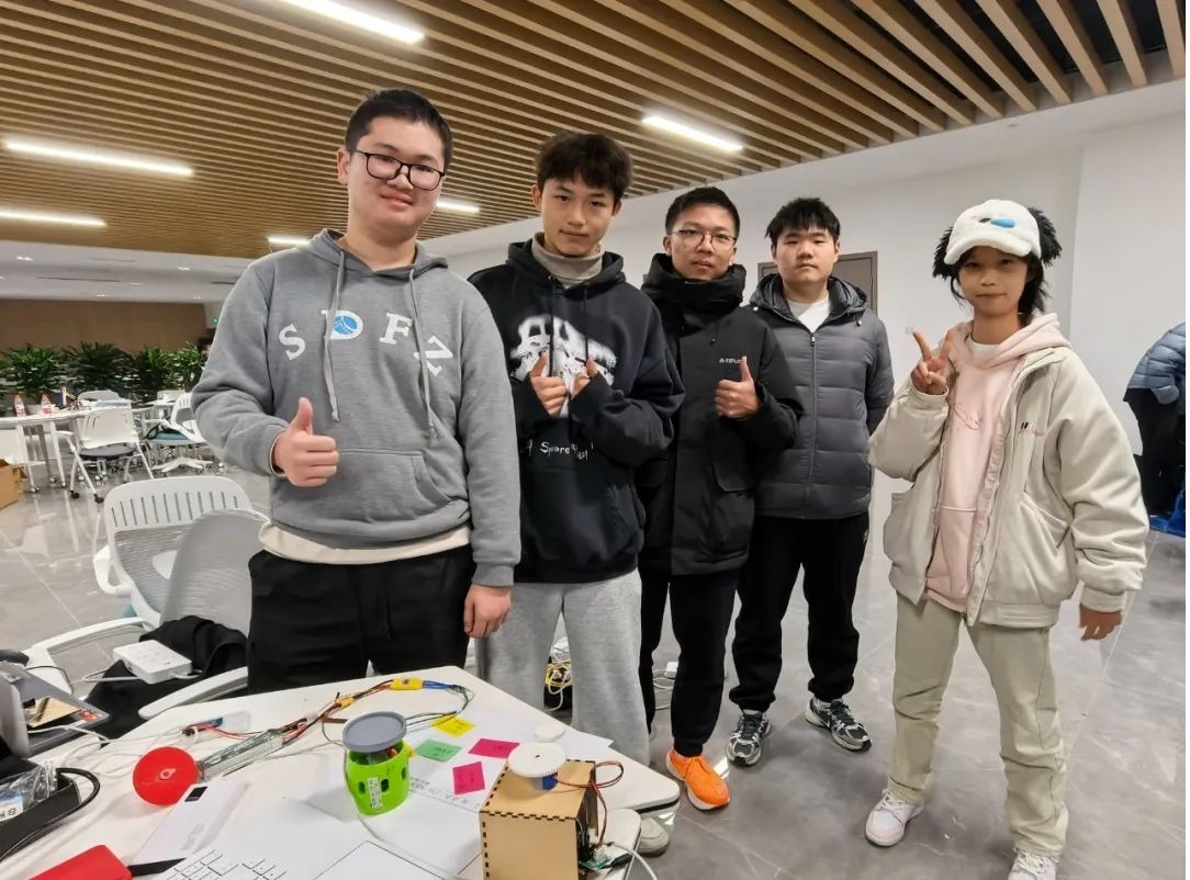 17 日早上 7 点 30 分,当工作人员抵达现场时,已有不少同学提前开工。活动正式开始后,现场紧张而有序,同学们争分夺秒,充分利用 8 个小时的创作时间,将创意与技术融入作品之中。与此同时,太阳成集团tyc7111cc FablabSIC(307)实验室全面开放,为同学们提供了丰富的实验资源和设备支持。