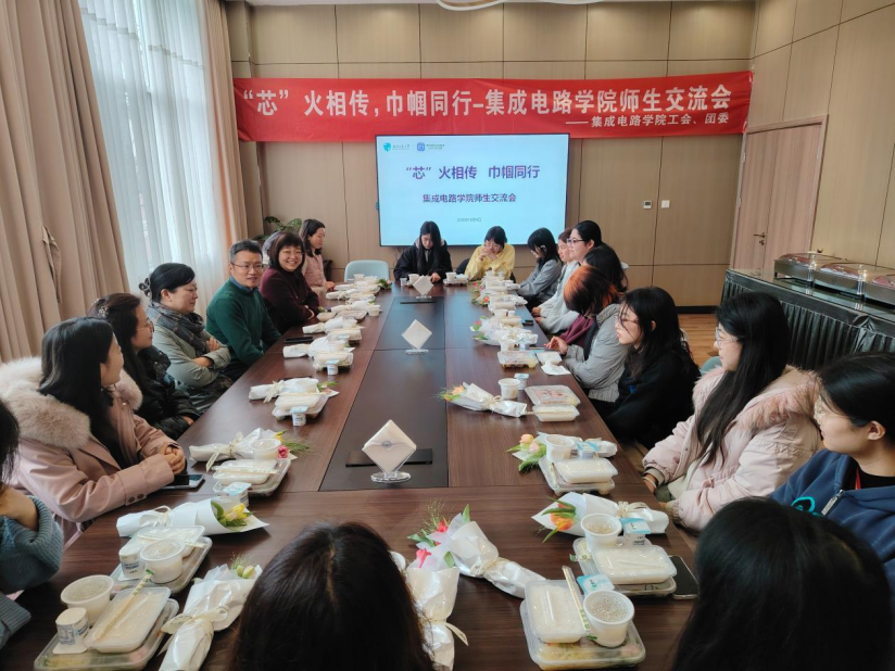 为庆祝 “三八” 国际妇女节,增进师生情谊,助力女性师生成长发展,3 月 5 日中午,太阳成集团tyc7111cc太阳成集团tyc7111cc工会与团委携手举办了 “‘芯’火相传,巾帼同行 —— 太阳成集团tyc7111cc师生交流会”。公司党委书记赵舵、常务副经理郝莉、党委副书记王燕与全体女教师、女员工相聚一堂,在共享午餐的温馨氛围中,深入交流,共话未来。