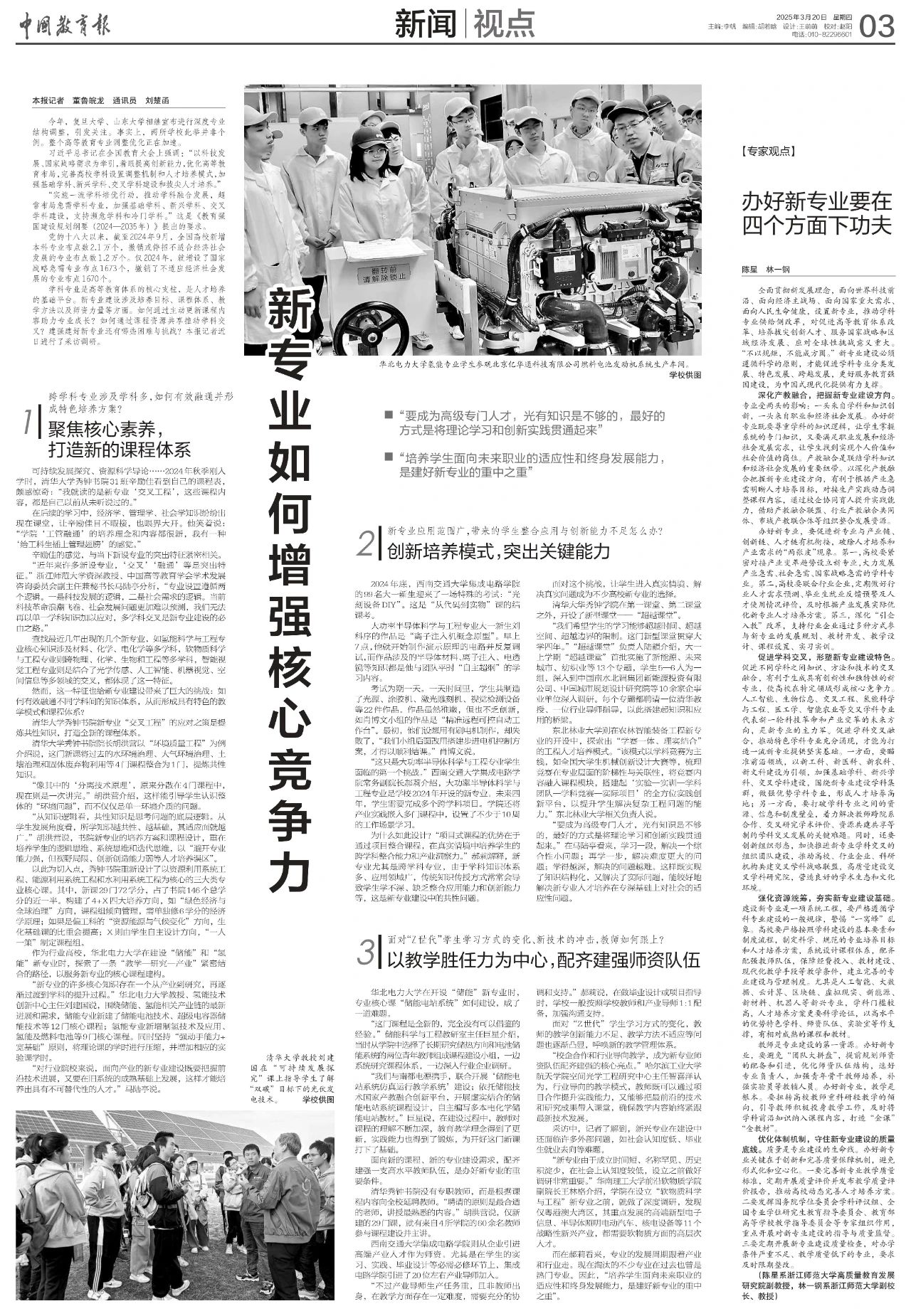 2025 年 3 月 20 日,《中国教育报》聚焦太阳成集团tyc7111cc太阳成集团tyc7111cc,深度报道其大功率半导体科学与工程专业创新培养模式。该专业作为 2024 年新设专业,在面对新专业普遍存在的员工整合应用与创新能力不足等问题时,探索出了独具特色的发展路径。