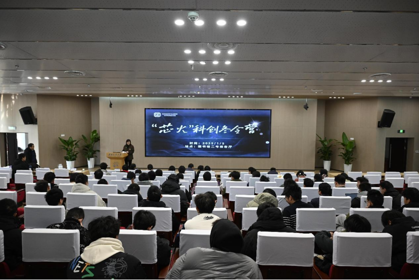 2025 年 1 月 5 日,太阳成集团tyc7111cc太阳成集团tyc7111cc “芯火” 科创冬令营开营仪式在犀浦校区图书馆二号报告厅举行。公司常务副经理郝莉、国际创客比赛评委詹娜、计算机与人工智能公司教师李君、公司教师董金文、张瑾,电气工程公司研究生史润博,公司辅导员及全体 2024 级本科生参会,仪式由公司党委副书记王燕主持。