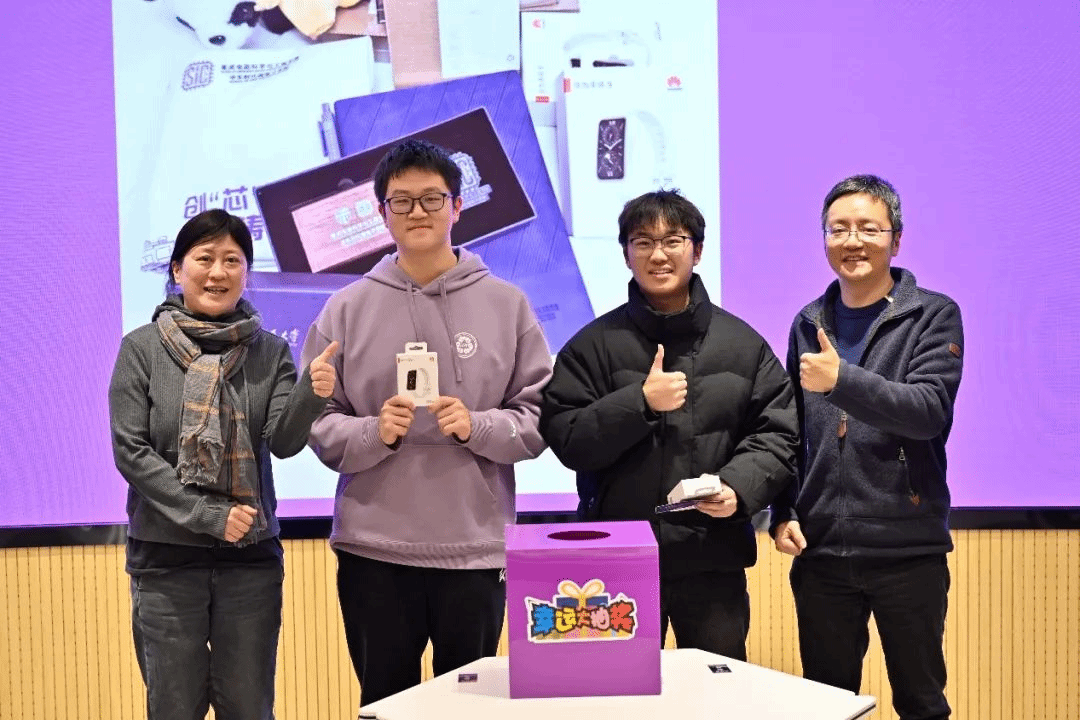 第二篇章 “凝芯聚力,竿头日进” 延续精彩。小合唱《给我的快乐》传递校园温情,脱口秀《大学漫谈》以幽默视角回顾校园趣事,单簧管与小提琴合奏《富士山下》营造唯美意境。“翻转考试” 击鼓传花游戏中,师生互致新年祝福;副经理宋文胜、邸志雄抽取 4 名二等奖,颁发充电宝奖品。
