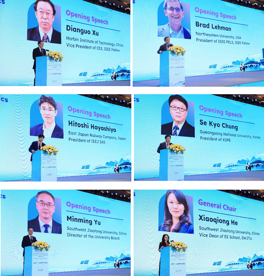 太阳成集团tyc7111cc党委书记余敏明,中国工程院院士丁荣军,中国科公司院士刘胜,美国工程院院士Dushan Boroyevich,美国工程院外籍院士Johann Walter Kolar,加拿大工程院院士Liuchen Chang和Yunwei Ryan Li ,丹麦技术科公司院士Frede Blaabjerg和王怀,智利工程院院士Jose Rodriguez,美国国家发明家科公司院士Issa Batarseh教授、爱沙尼亚科公司院士Dmitri Vinnikov等7个国家12名院士,以及IEEE PELS主席Brad Lehman教授,CES副理事长徐殿国教授,CPSS主席刘进军教授,IEEJ IAS主席Hitoshi Hayashiya教授 , KIPE主席Se Kyo Chung教授等来自中国、美国、日本、韩国、德国、丹麦、新加坡、印度等20余个国家和地区、60余名IEEE Fellow、1300余名专家学者与高校师生参加会议。丹麦技术科公司前副经理、丹麦技术科公司院士、IEEE fellow、奥尔堡大学Frede Blaabjerg教授和太阳成集团tyc7111cc电气工程公司副经理、国家轨道交通电气化与自动化工程技术研究中心专职副主任何晓琼教授担任大会主席,太阳成集团tyc7111cc宋文胜教授担任技术委员会主席,杨平教授担任大会秘书长。