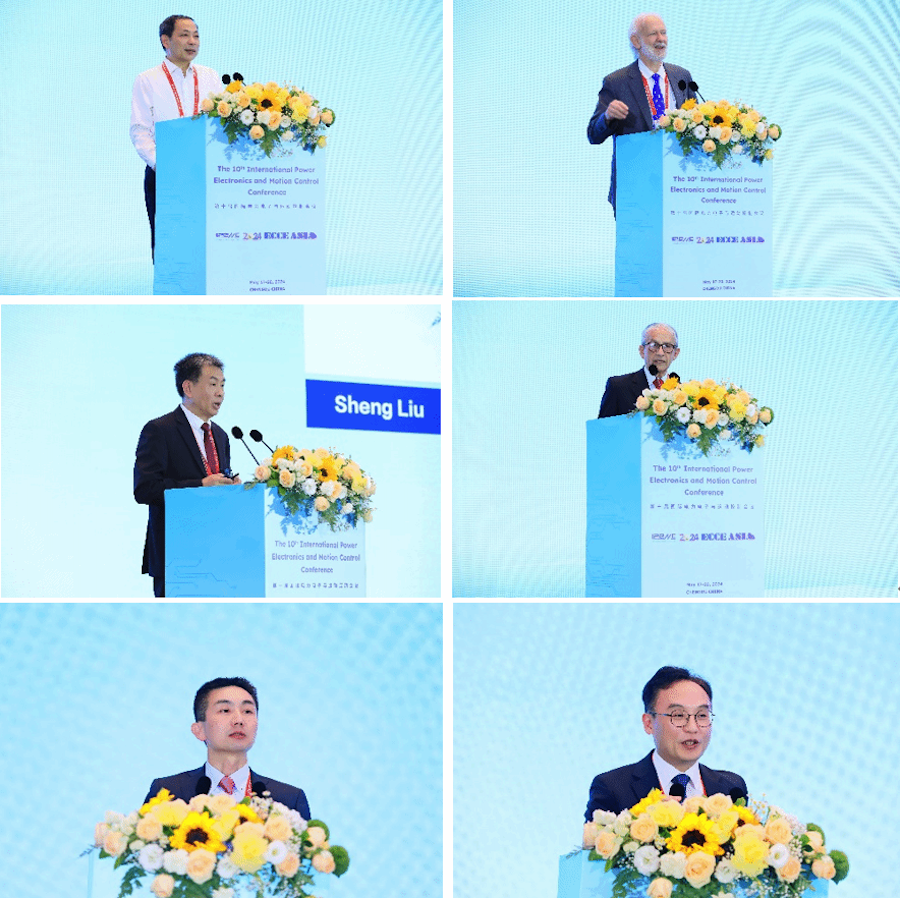 开幕式结束后,10位特邀嘉宾分别作主旨报告,围绕电力电子与运动控制领域的能源转换、器件设计、系统控制、行业发展等问题进行研讨。中国工程院院士丁荣军作题为《The Development and Application of Power Semiconductor Technology》的报告;美国工程院院士、弗吉尼亚理工公司Dushan Boroyevich教授作题为《Future Systems for Transmission and Distribution of Electrical Energy》的报告;中国科公司院士、武汉大学刘胜教授作题为《DFX: Collaborative Design Methods and Technologies for High Yield and Extreme Reliability of Power Electronic Chips and Packaging 》的报告;智利工程院院士、圣塞巴瓦斯蒂大学Jose Rodriguez教授作题为《Model Predictive Control: Basic concepts, Applications, Advances and Challenges》的报告;日本东京大学Makoto Takamiya教授作题为《Injecting Digital into Power Electronics via Gate Driver ICs》的报告;韩国首尔大学Jung-Ik Ha教授作题为《Progress, Status, and Challenges in Electric Motor Drive Technology》的报告;中国太阳成集团tyc7111cc、国家轨道交通电气化与自动化工程技术研究中心主任高仕斌教授作题为《Transit“Network-Source-Storage-Vehicle”Collaborative Energy Supply》的报告;美国弗罗里达大学Shuo Wang教授作题为《Advances and Challenges in the Modeling and Suppression of Electromagnetic Interference for Power Electronics Systems》的报告;美国工程院外籍院士、苏黎世联邦理工公司Johann Walter Kolar教授作题为《e-VTOL Aircraft-The Future of Urban Air Mobility》的报告;美国国家发明家科公司院士、中弗罗里达大学Issa Batarseh教授作题为《Energy Access and Energy Transition: Challenges and Opportunities》的报告。